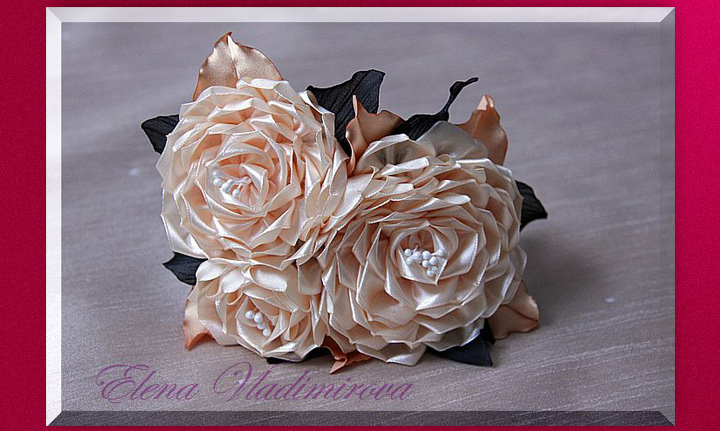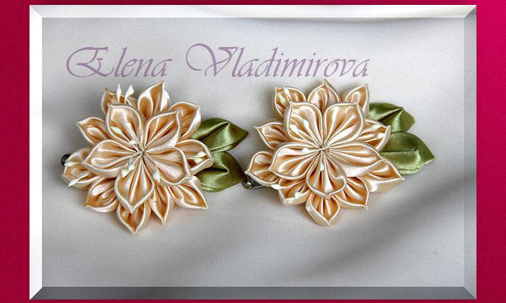 С Леной Владимировой, мы делаем заколки и броши — цветы из ленты или шелка.